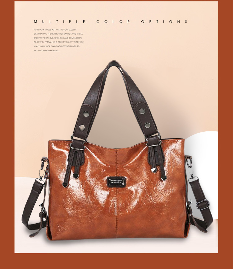 حقيبة نسائية ايطالية كبيرة السعة من جلد شمعي ناعم
